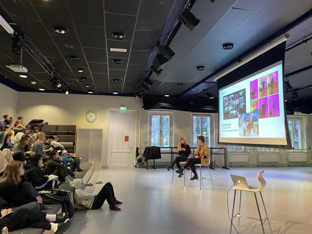 On February 23nd, 2024 the Intercult team visited Balettakademien for an inspirational and informative lecture about Theatre in Palm (TIP) and EU funding opportunities for artists. We were joined by Noah Hellwig and Martina Viglietti, participants of previous TIP residencies. They shared their TIP experiences from Greece, Portugal and Stockholm, engaging in a dynamic dialogue with the dance and theatre students of BA. The visit proved to be both enriching and enlightening.